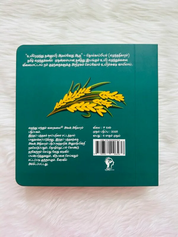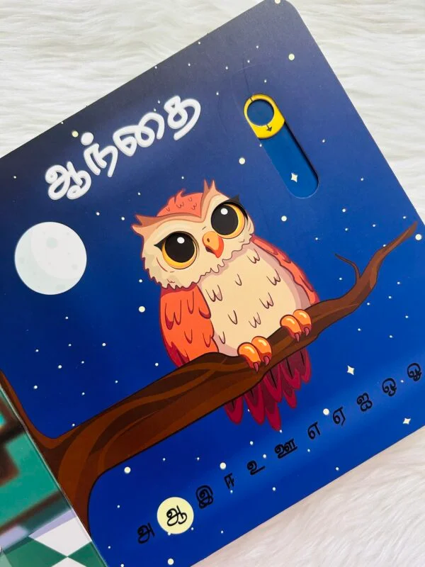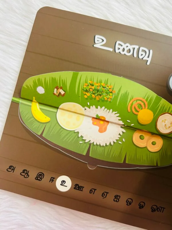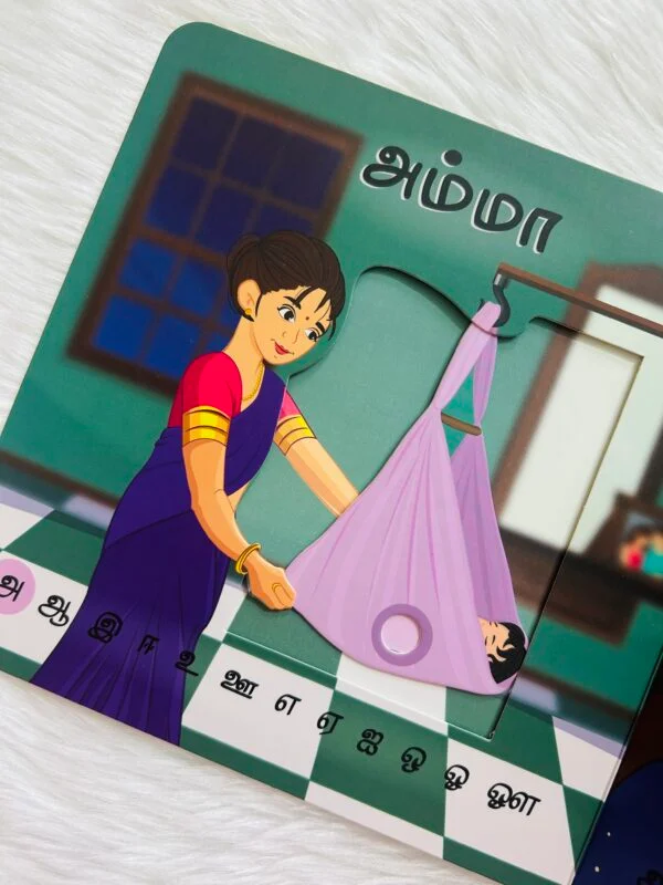 Introduce your child to Tamil vowels with Uyir Chuvadi – the first interactive Tamil book crafted especially for young learners. Designed to make learning fun and engaging, this book features sliding elements, touch-and-feel textures, push-and-pull tabs, and lift-the-flap surprises. It provides an immersive experience that enhances early alphabet recognition and sensory development, making it a perfect addition to your child’s learning journey!